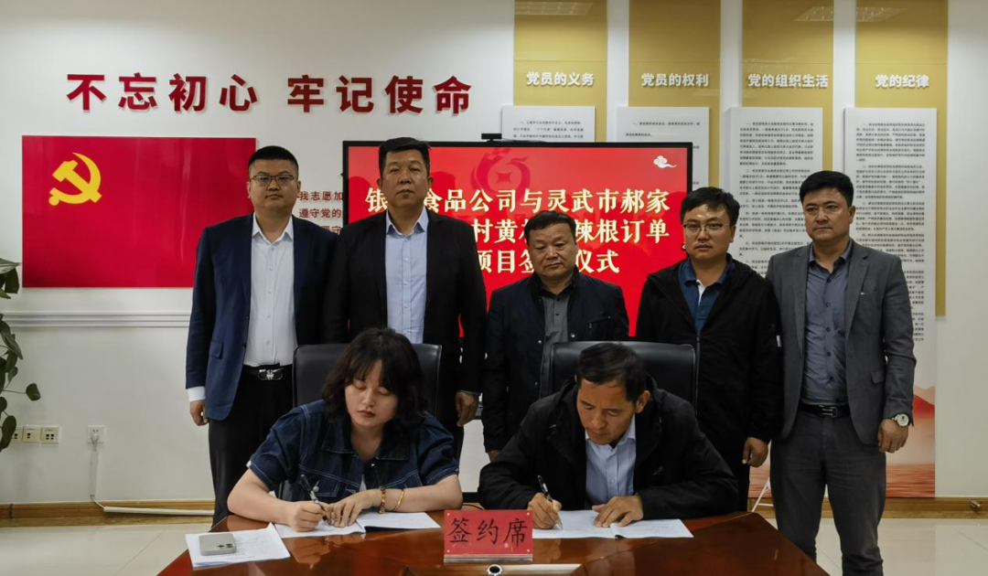 為深入貫徹黨中央關于實施鄉(xiāng)村振興戰(zhàn)略的重大部署,認真落實銀川創(chuàng)投集團黨委關于做好郝家橋鎮(zhèn)永清村對口幫扶產(chǎn)業(yè)扶持工作,綜投公司積極謀劃推動黃桃、辣根產(chǎn)業(yè)導入工作,經(jīng)過近一年時間調研、協(xié)調和推進,成功將綜投公司參股企業(yè)寧夏銀冠食品有限公司(以下簡稱“銀冠公司”)優(yōu)勢農(nóng)產(chǎn)品加工種植業(yè)導入永清村。5月10日,銀冠公司與永清村在綜投公司簽訂了訂單種植合作協(xié)議,簽約訂單種植面積200余畝。綜投公司總經(jīng)理馬曉偉、副總經(jīng)理陳超、銀冠公司總經(jīng)理李紅兵、永清村村委一行出席簽約儀式。